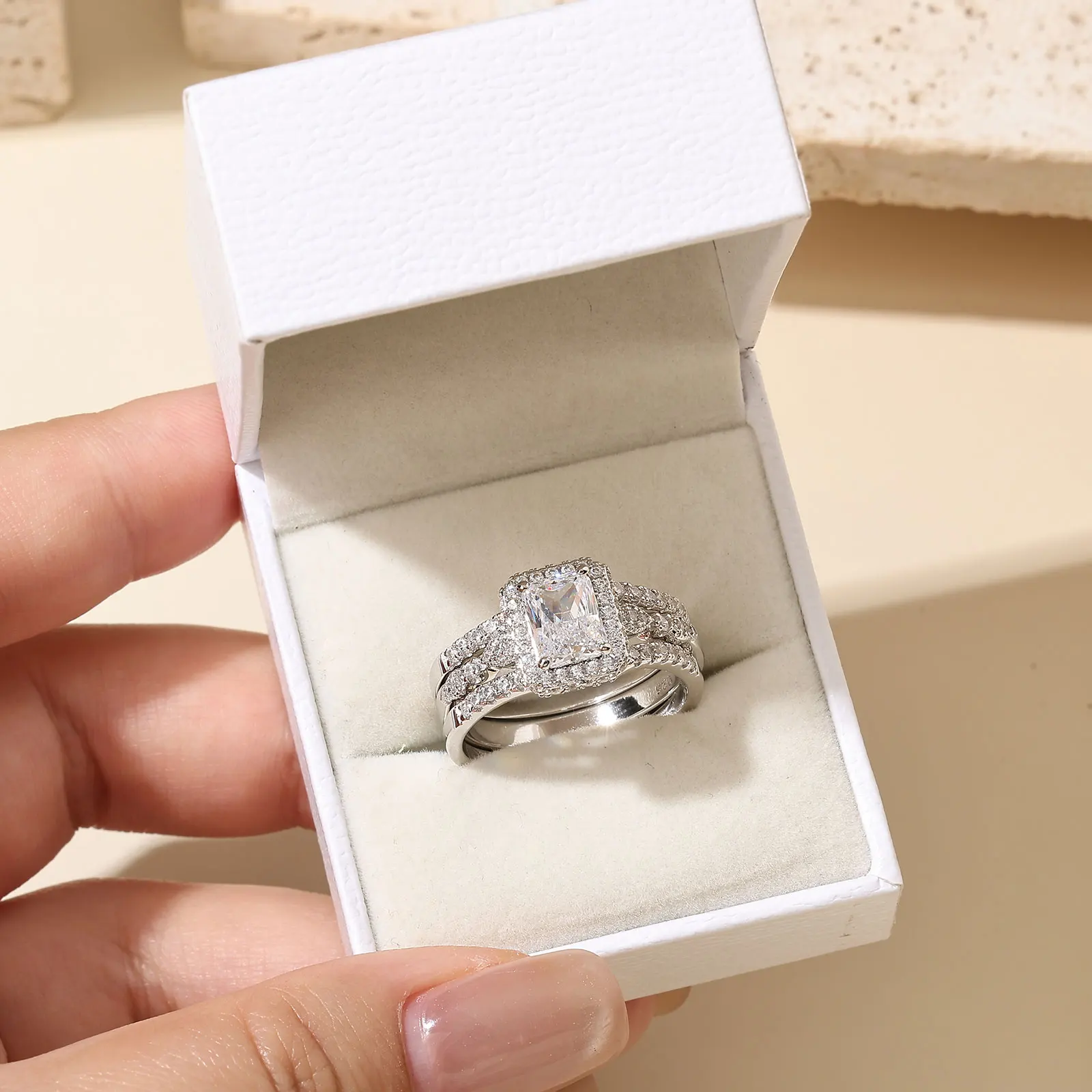 - Set Type: Two-piece Wedding & Engagement Ring Set